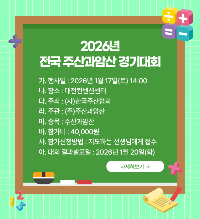 - 본대회는 주산을 널리 알리고자 하는 보급대회입니다.