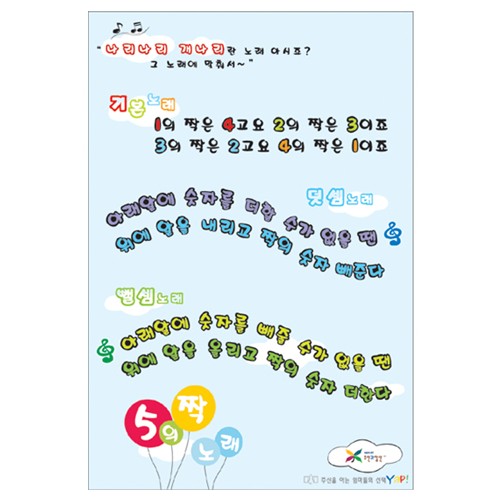 교실의 환경정리용으로도 좋으며 주산을 아이들에게 쉽고 재미있게 이해시킬수 있는 5의짝노래입니다