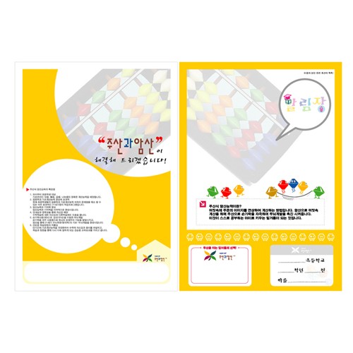 주산과암산 판촉물용으로 만들어진 알림장입니다