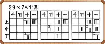 4~5,000년전, 메소포타미아 지방에서는 흙이나 모래 위에 선을 끌어 거기에 작은 돌을 두어 계산하고 있었다고 말해지고 있습니다. 주판의 원형이라고 할 수 있습니다.