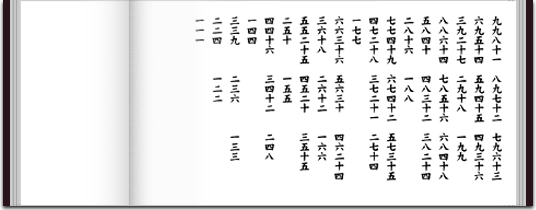 99는 중국에서 전해져와, 일본의 서적에서 가장 오래된 「99」가 나타나는 것은, 헤이안 시대의 「구유」(970년, 근원때 문헌) 입니다. 이것은 당시 귀족의 자제 교육의 교과서였습니다. 9981으로부터 시작됩니다. 영어의 알파벳을 「ABC」이라고 말하듯이, 99로부터 시작되기 때문에, 1자리수의 곱셈표를 「99」단이라고 합니다. 나눗셈에서는, 왼쪽과 같은 「나눗셈 소리」(나눗셈99) 를 이용해 계산했습니다.