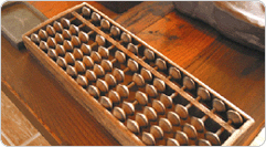 아바쿠스는 "평판"이라고 하는 의미로 평평한 판(돌이라든지 나무로 되어 있음)을 말합니다. 그 위에 돌을 늘어놓아 계산했습니다. 인류의 역사에 있어 수를 나타내거나 계산한다고 하는 것은 매우 어려운 일이었습니다. 그러니까 온 세상에서 누구나가 알기 쉬운 구체적인 돌이나 코인 그리고 구슬을 사용해 계산하는 「주판」이 탄생했습니다.